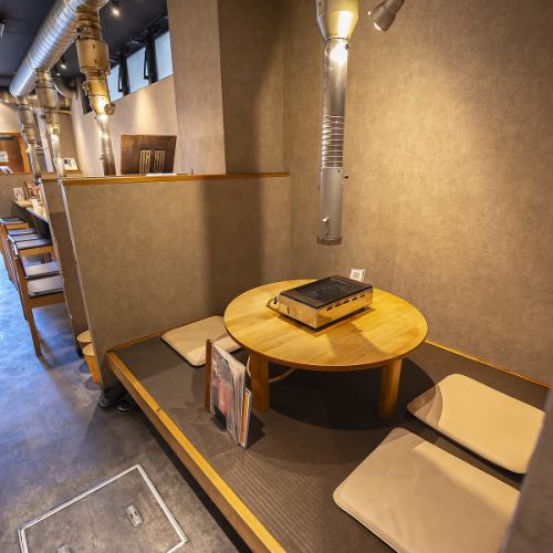 周囲を気にせず、ゆっくりと焼肉を楽しみたい方におすすめなのが【半個室】。最大8名様まで利用できる半個室もご用意しています。少人数でのプライベートなお食事から、大切なお集まりにも最適◎ 足を伸ばしてくつろげるので小さなお子様連れでも安心してご利用いただけます。